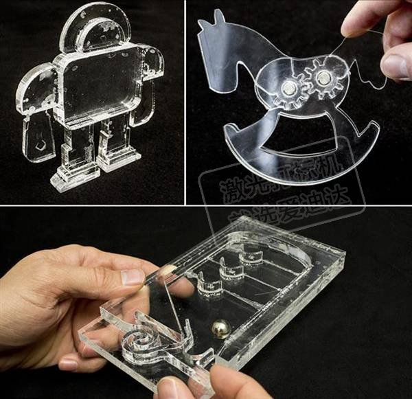 在日常生活中,激光切割亚克力板也并不少见。因亚克力具有防水,防潮,防紫外线,耐腐蚀,透光率高具有水晶质感等优势,城市中随处可见的路牌、广告灯箱等多采用亚克力材质,透明的质感运用到家具制作中,效果也是别具一格。